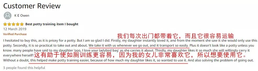 “使如厕训练更容易,我的女儿非常喜欢它”