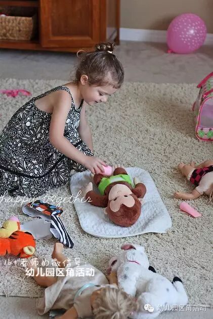 提供足够的环境、材料和机会给到孩子,通过游戏扮演爸爸、妈妈,获得安抚。