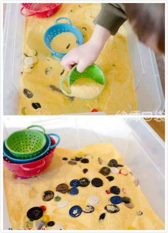 给托小班年龄段的孩子可以提供一些低结构的材料,一方面可以玩些触觉游戏,另一方面低结构材料的特性,让游戏不限于一种玩法。