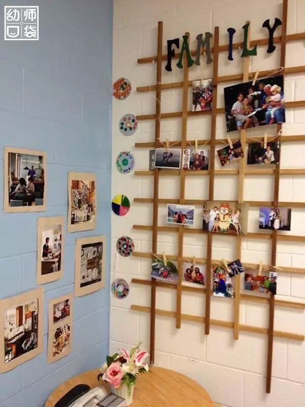 我们不妨在家访的时候就收集每个家庭的全家福,在主题墙贴上这些照片,营造温馨的气氛,让幼儿能够在家人的相片中获得安抚。