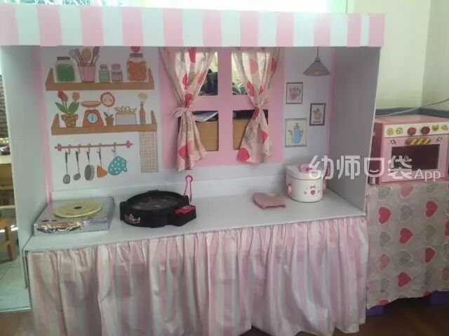 资深的幼教老师给出建议,小班的角色游戏玩娃娃家是再适合不过了,并且建议设置2-3个平行的娃娃家、小厨房区域。